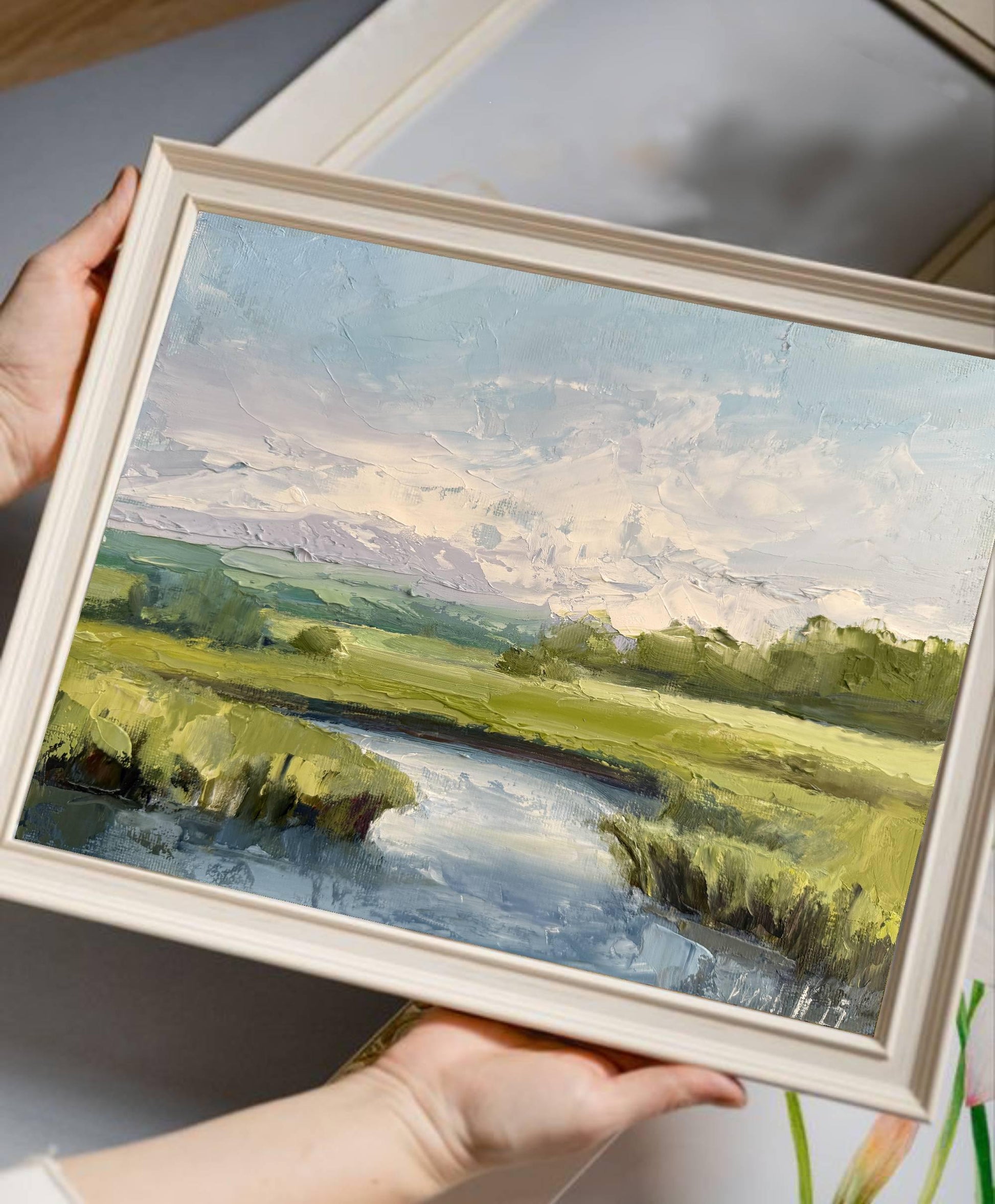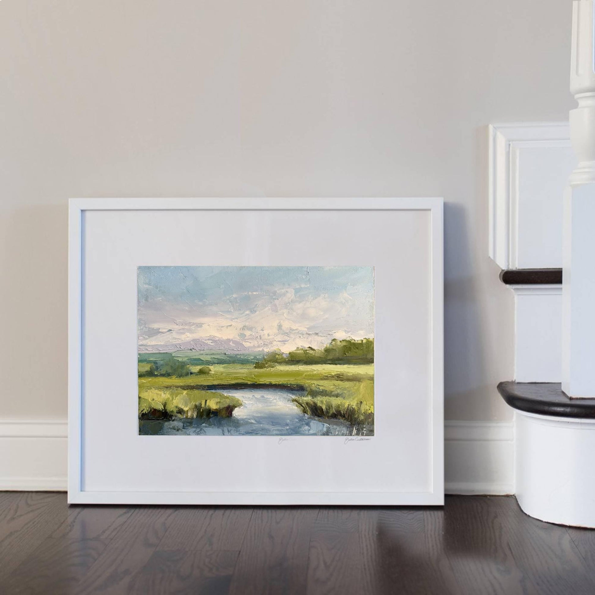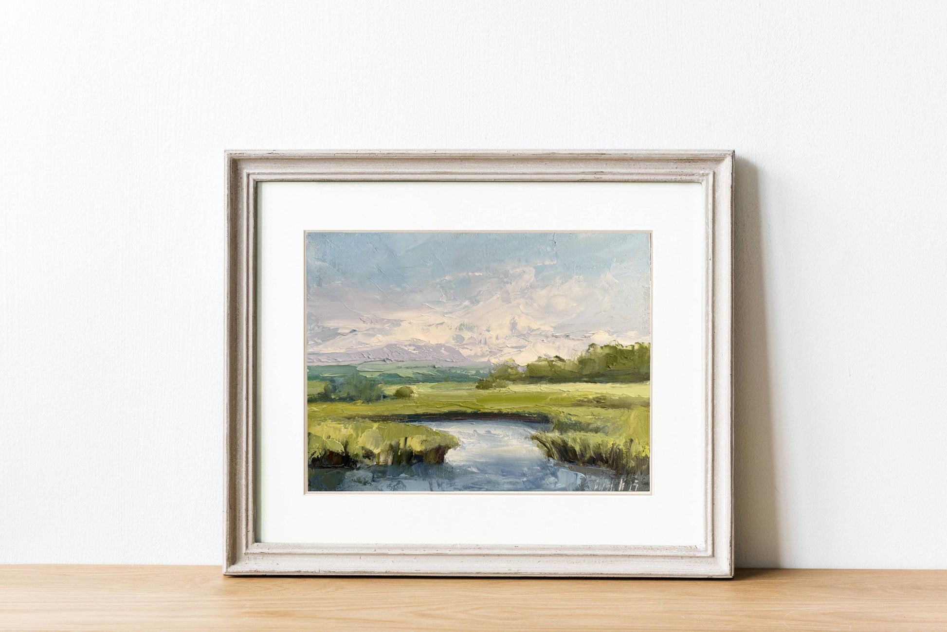 Charleston canvas oil painting for home wall decor. Low country landscape painting for gift. Sunset wetland art for shelf decoation.