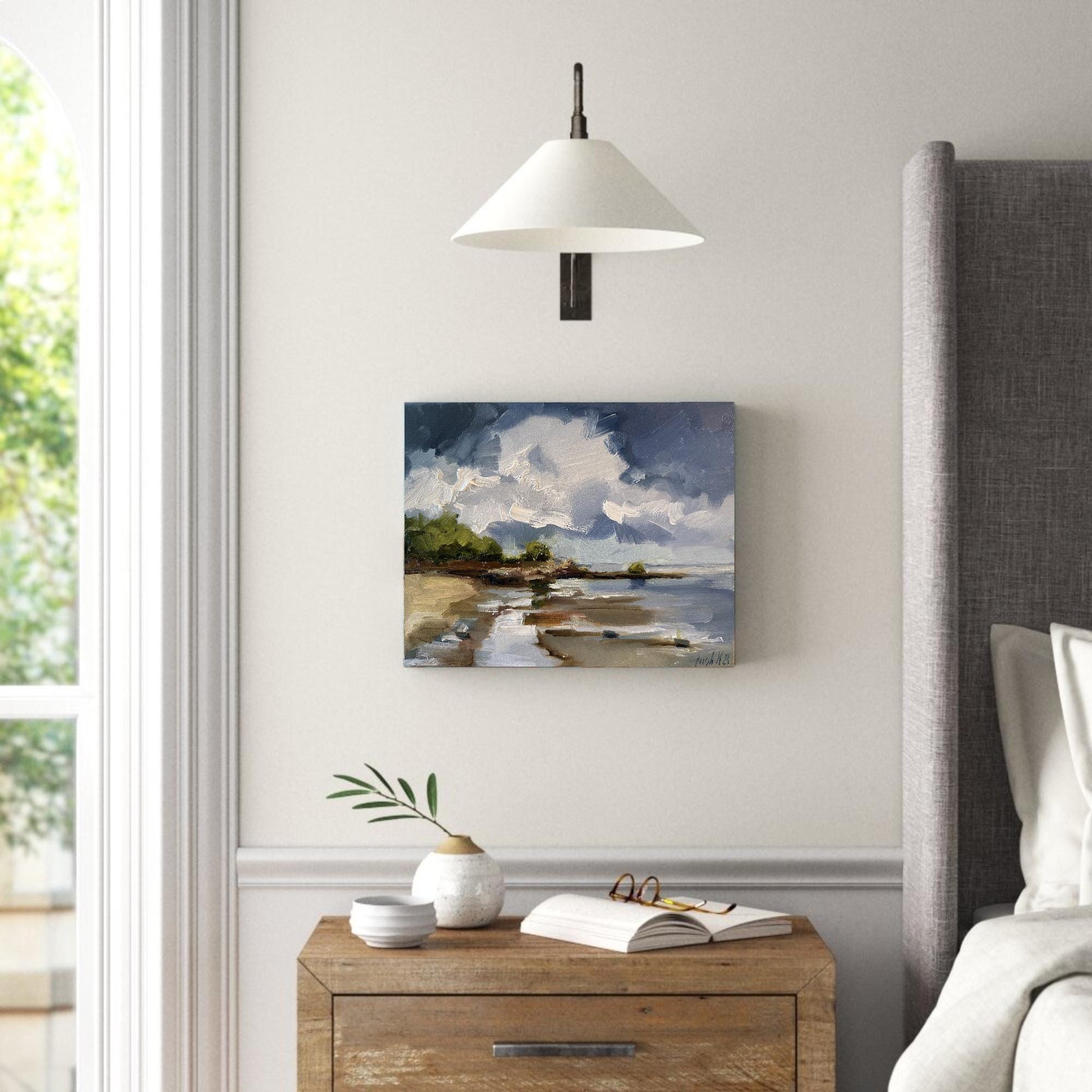Coastal art original oil painting on canvas for new home wall decor. Abstract ocean painting for gift. Seashore beach artwork for room decor.