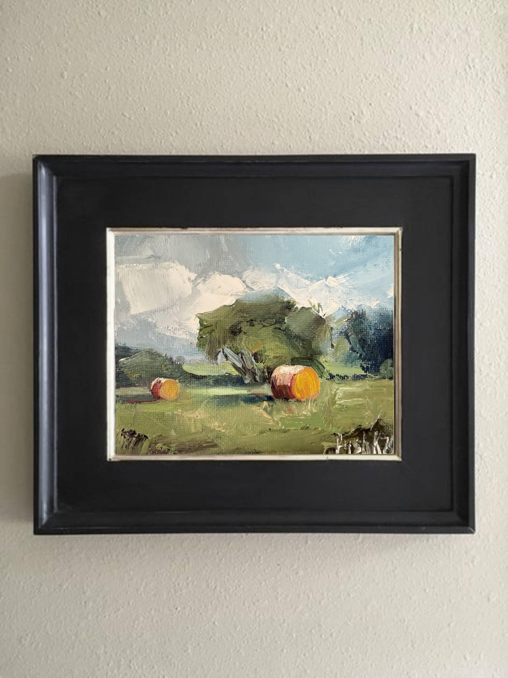 Countryside landscape oil painting on canvas. Autumn field miniature framed oil painting for home wall decor. Farmhouse small original art for gift.