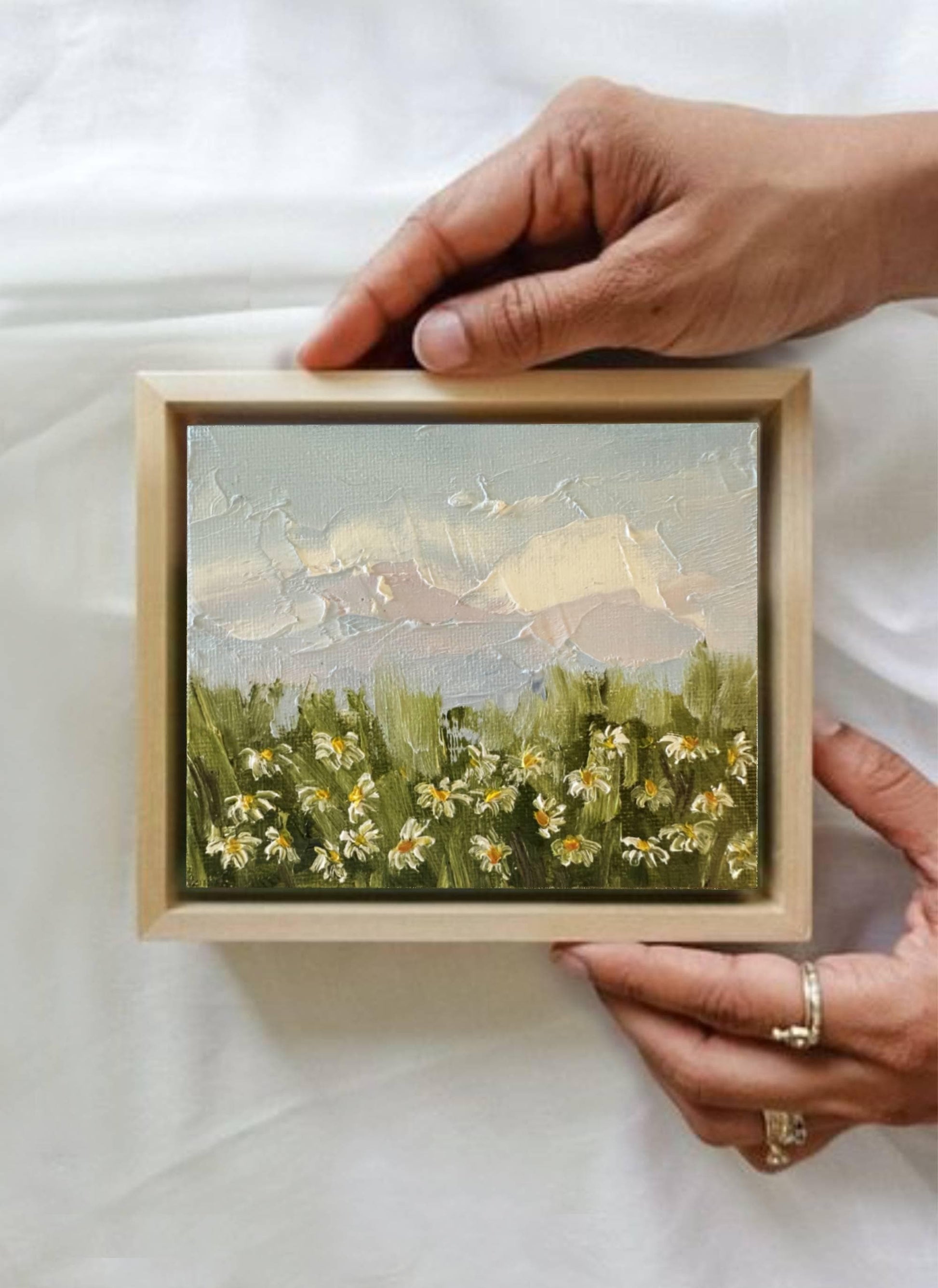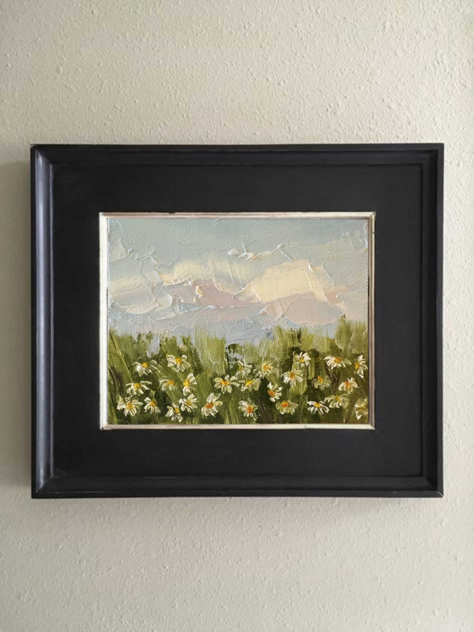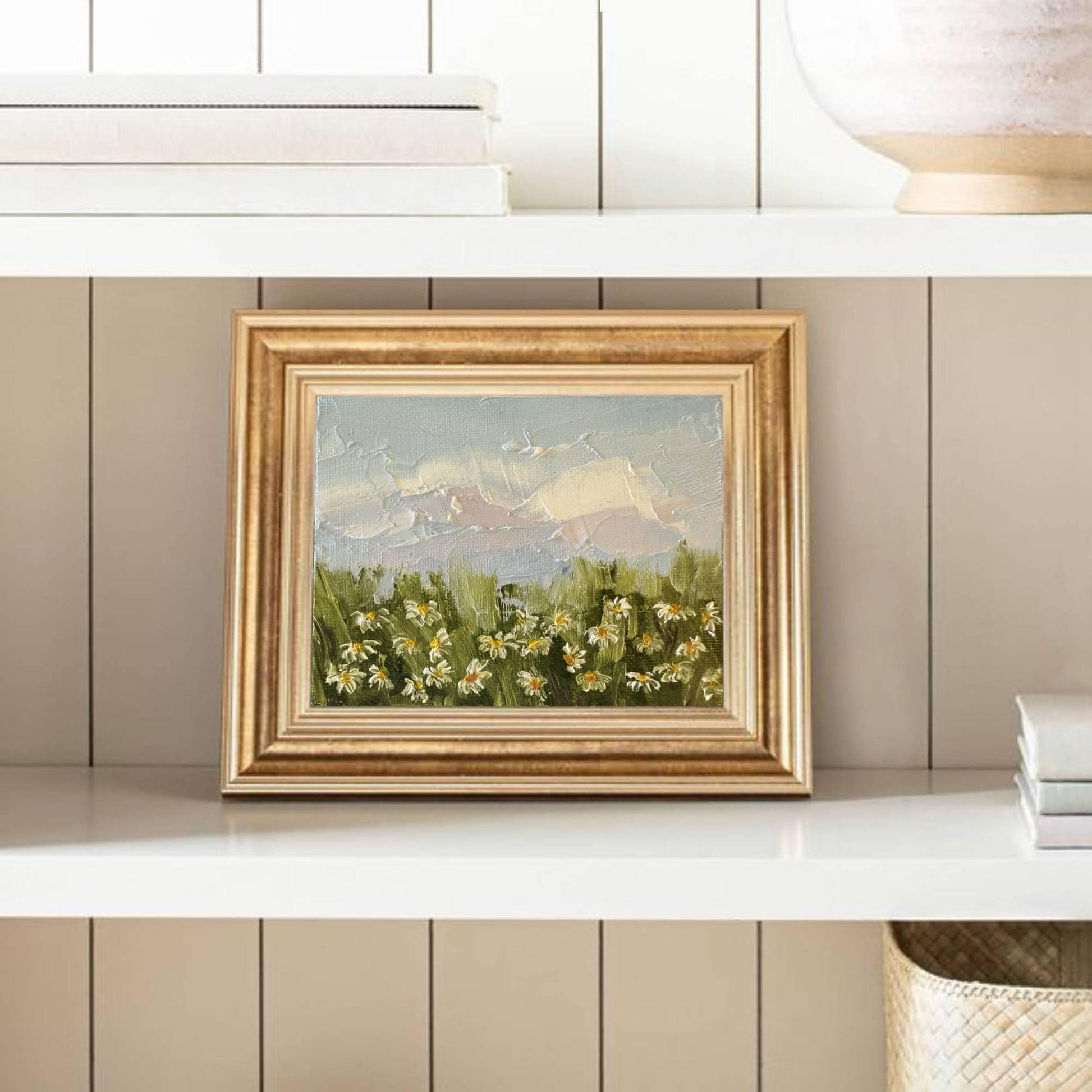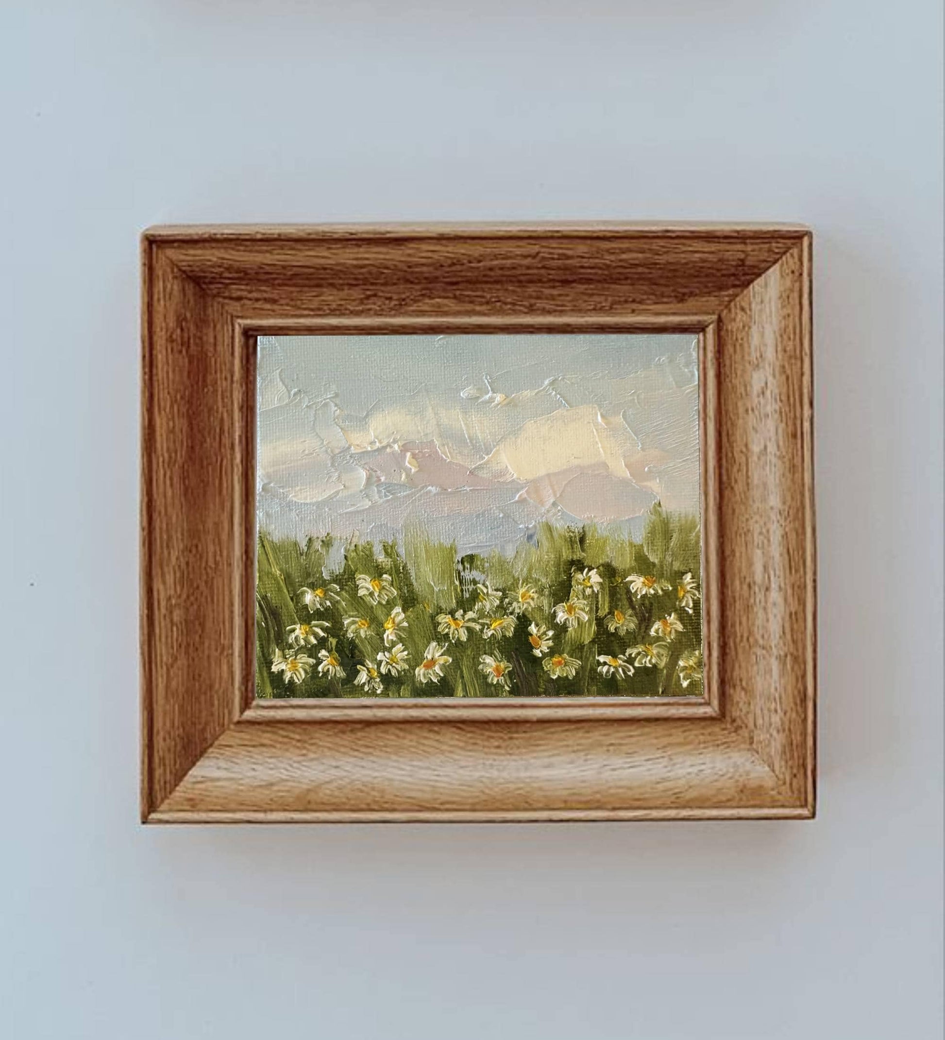 Daisy original oil painting on canvas for home wall decor. Field of flowers painting for wall decoration. Wildflower meadow miniature painting for gift.