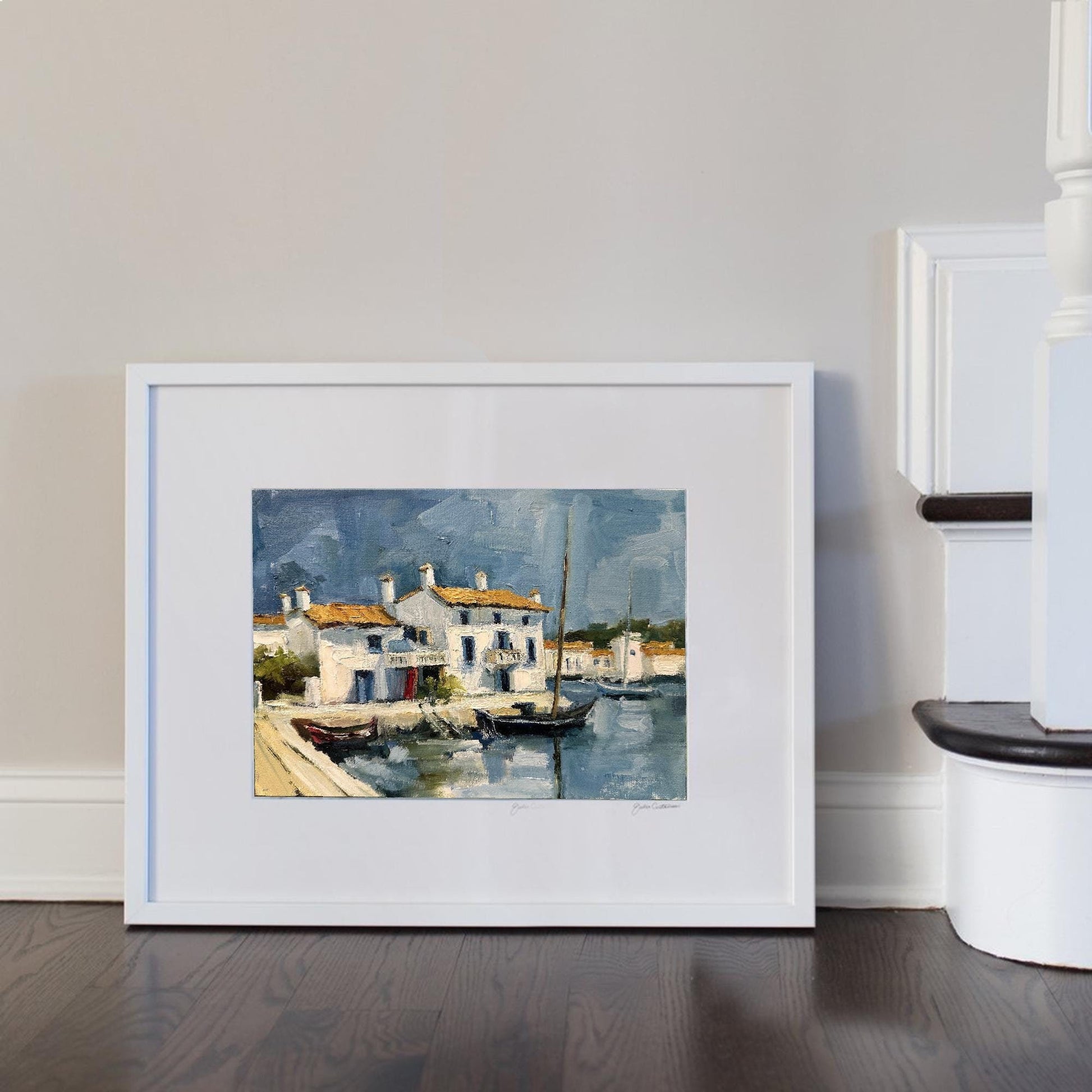 A serene glimpse of Greek island life, this textured oil painting captures whitewashed architecture, sunlit walls, and deep blue skies. Inspired by the timeless beauty of Mykonos, it's a perfect piece to bring Mediterranean warmth into your space