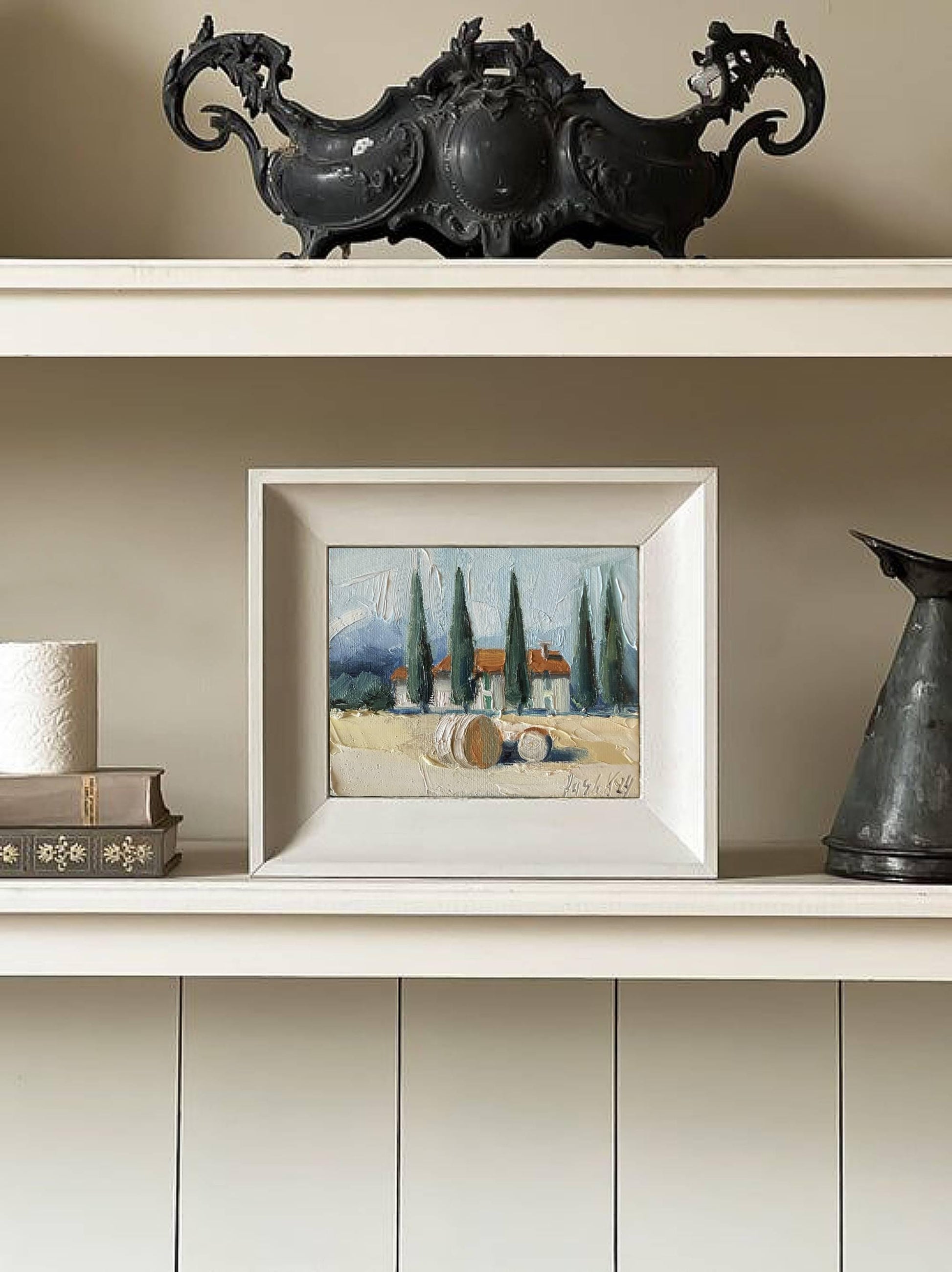 Italian oil painting on canvas for home wall decor. Small abstract art for sale. Tuscany palette knife painting for gift. Farmhouse style art for home decoration.