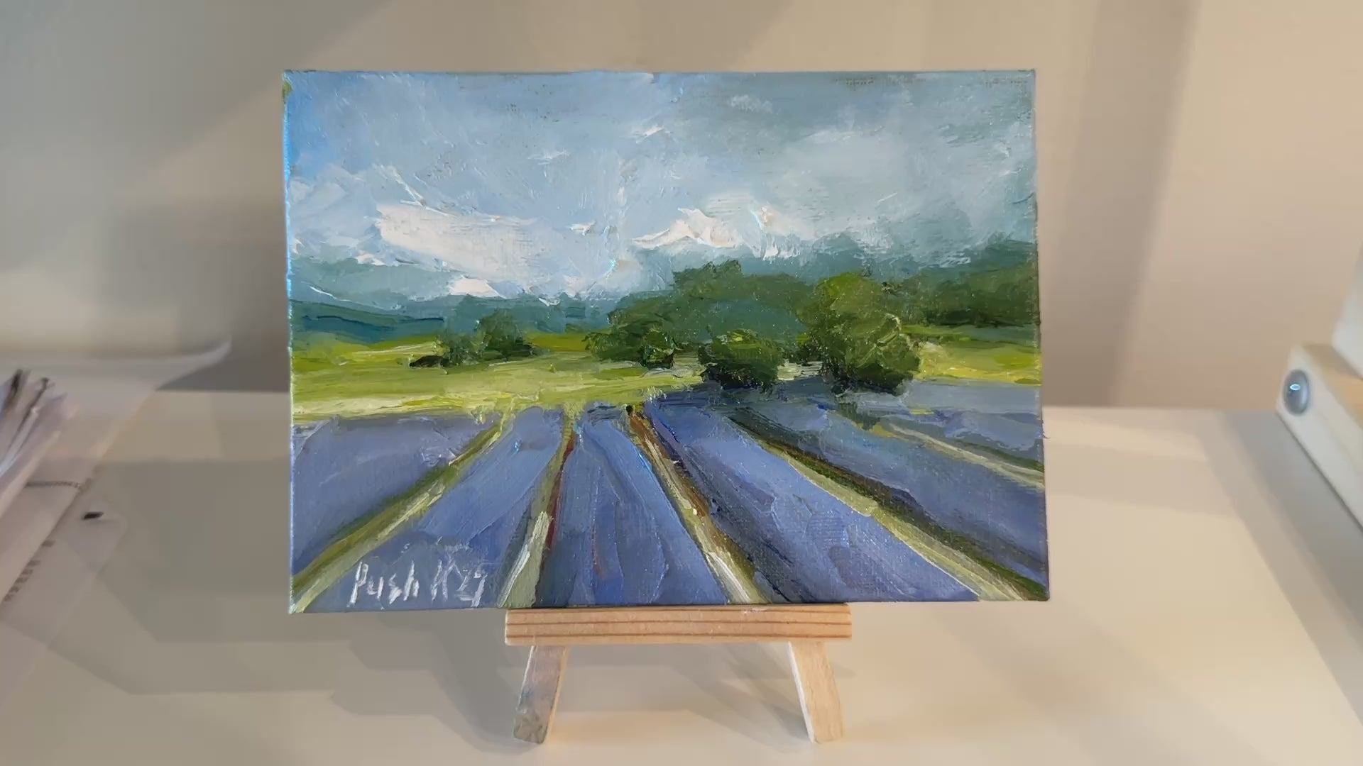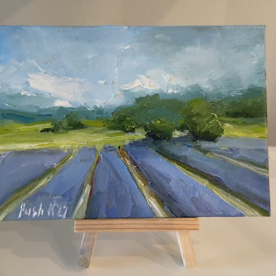 French country canvas oil painting for home wall decor. Lavender landscape mini canvas oil painting. Nature palette knife painting for gift. Farmhouse style art for home decoration.