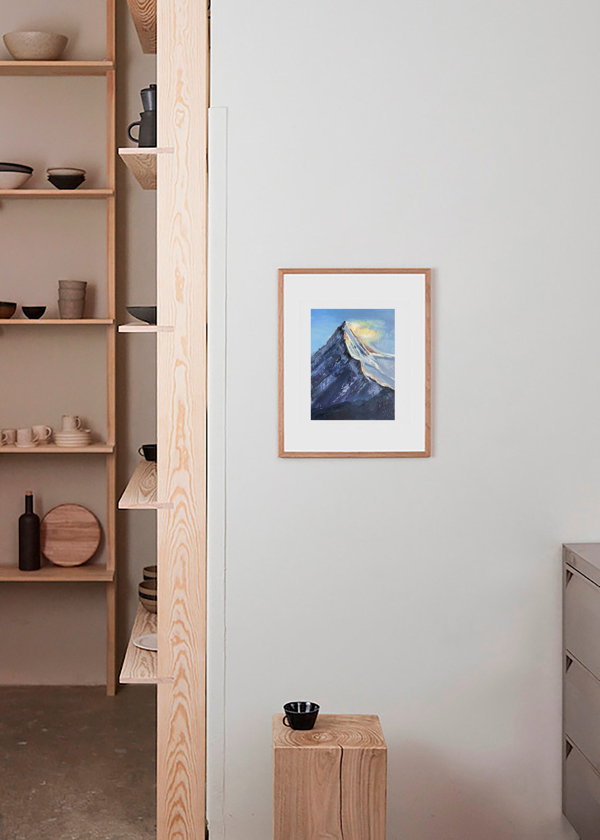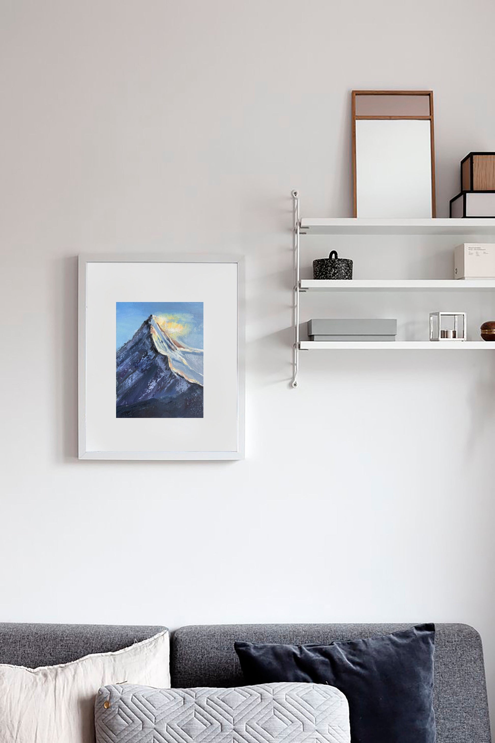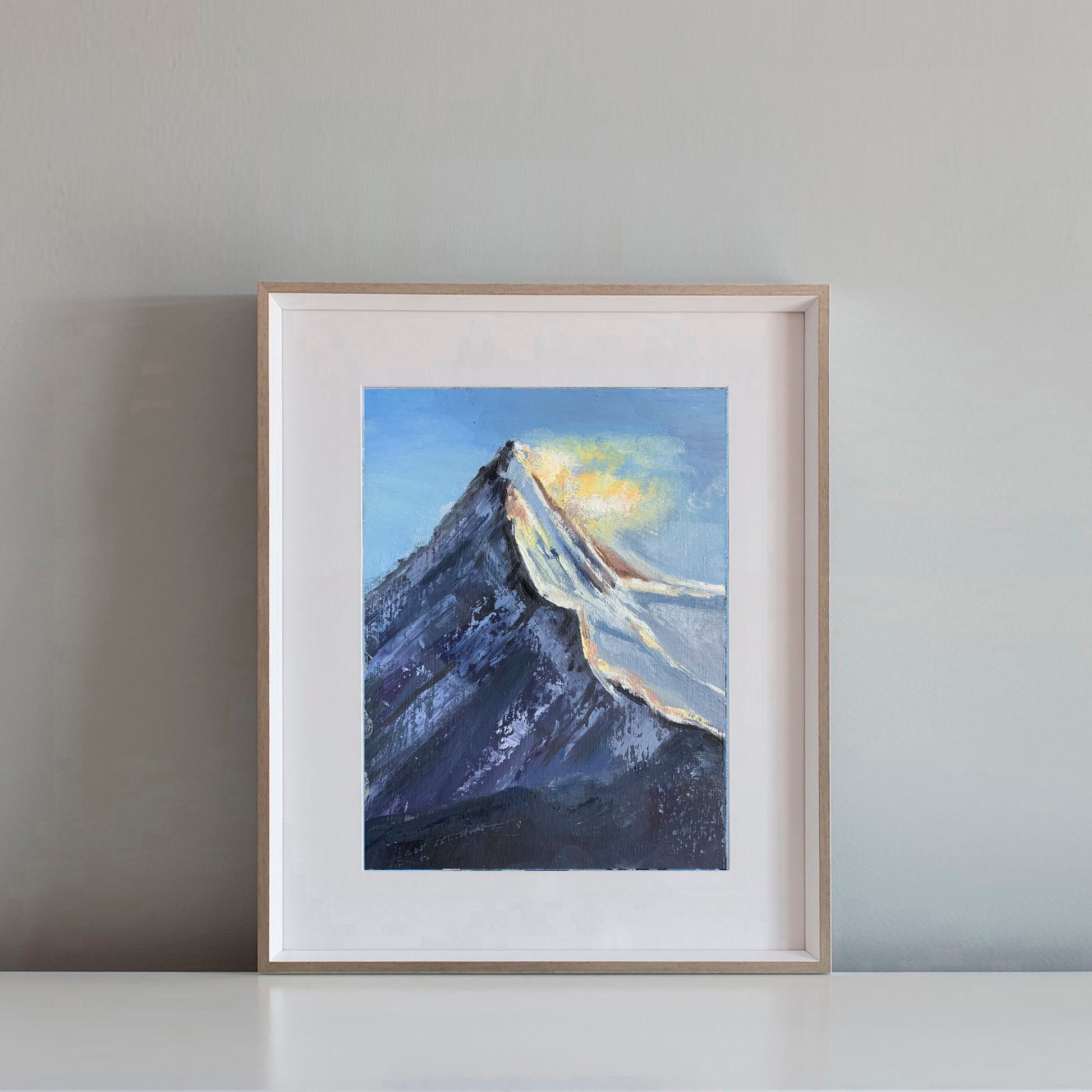 Winter mountain oil painting for home wall decor. Colorado rocky mountain artwork for a new home gift. Modern mountain art for shelf decoration.