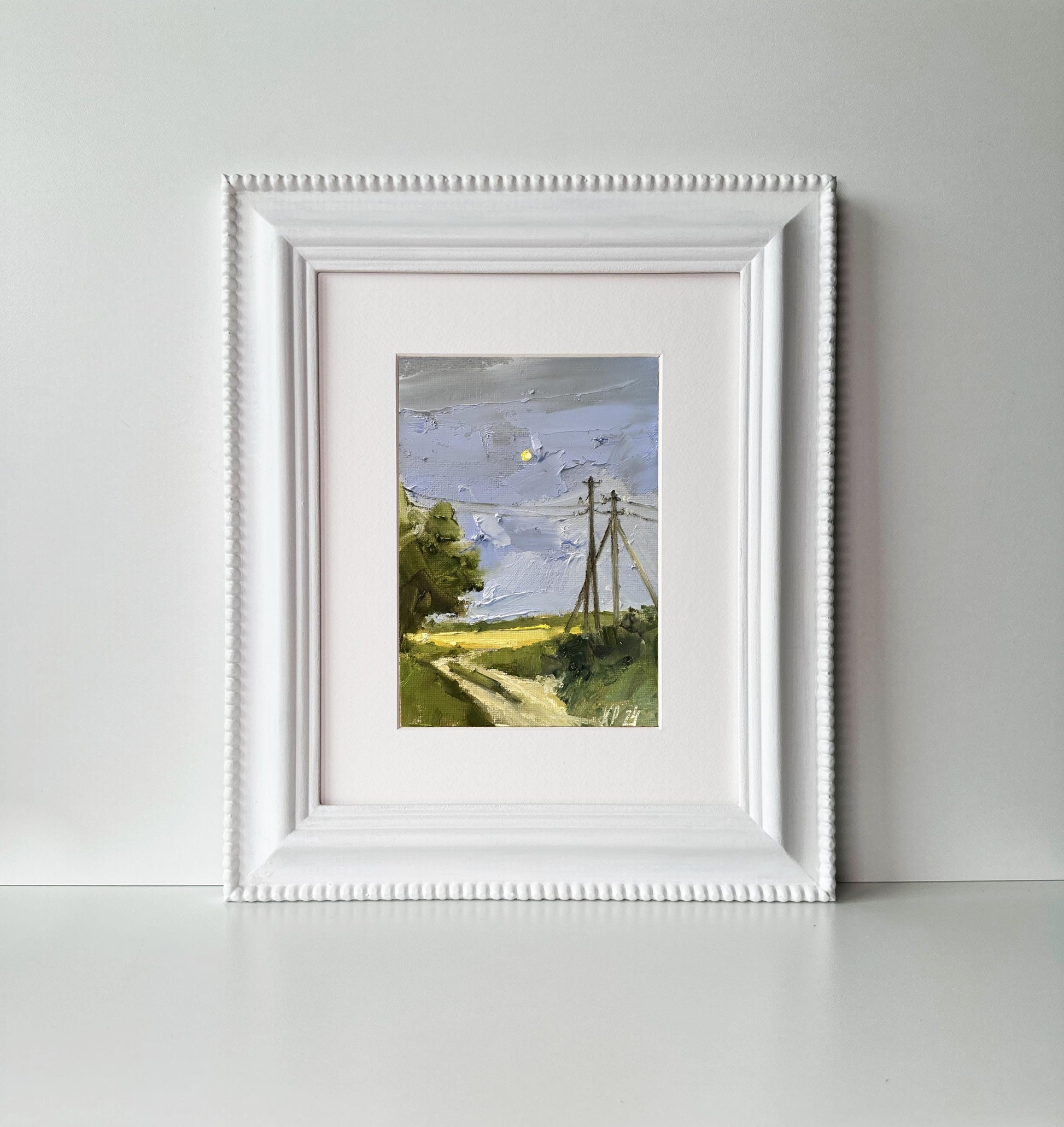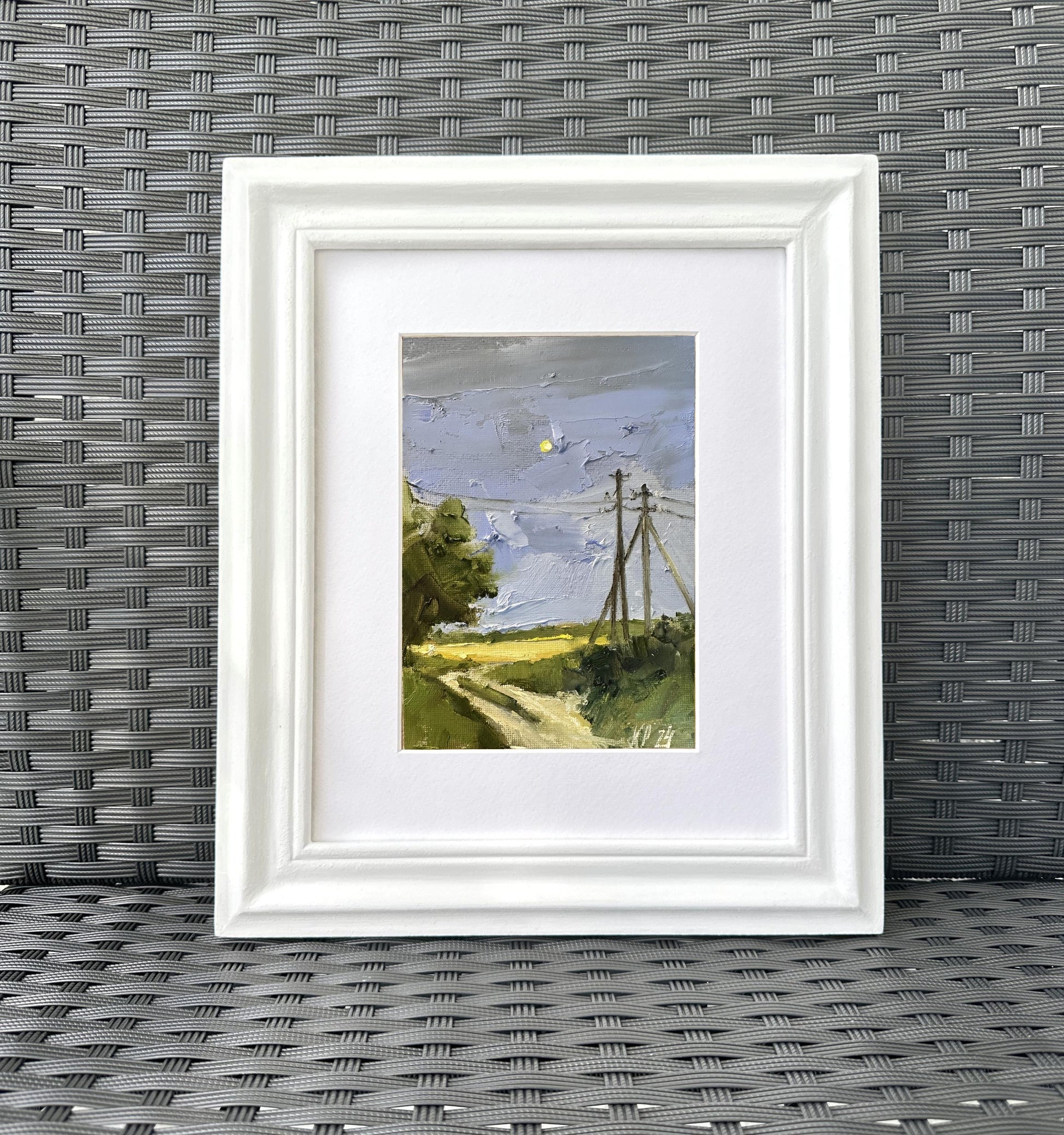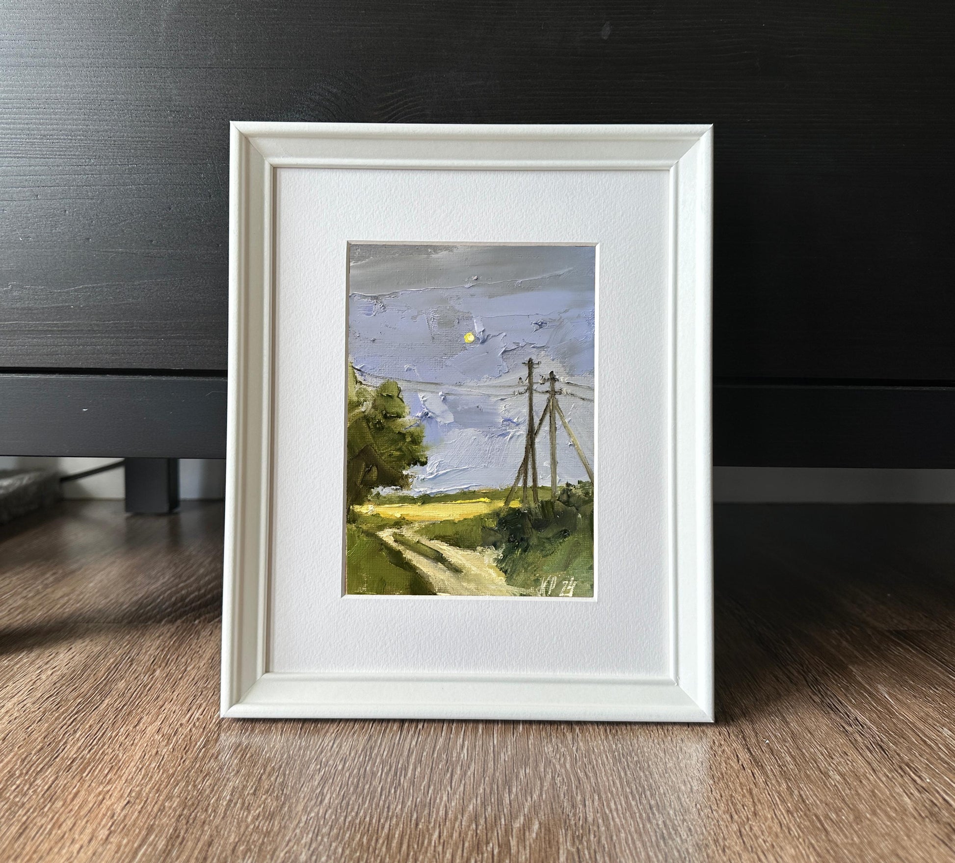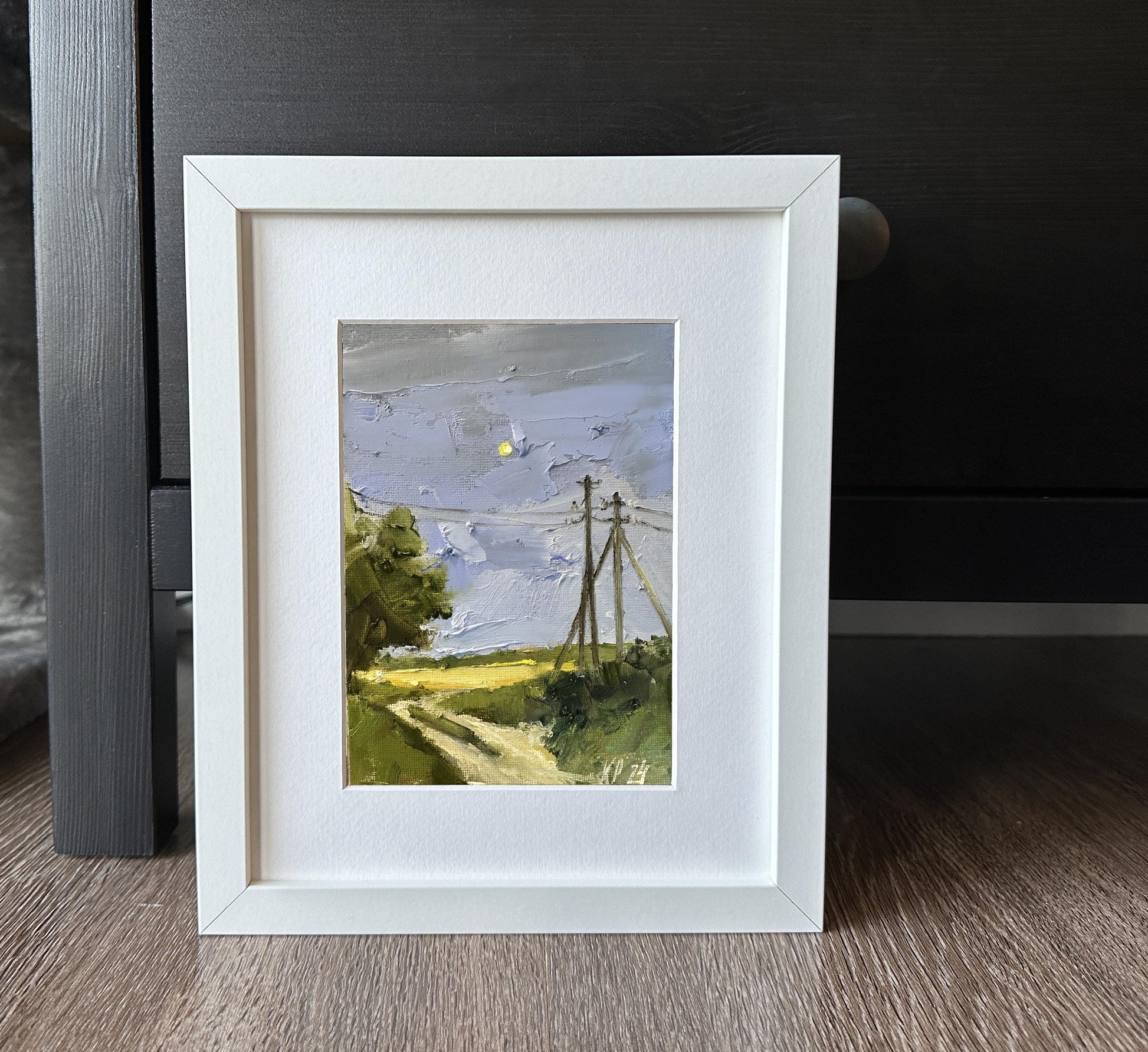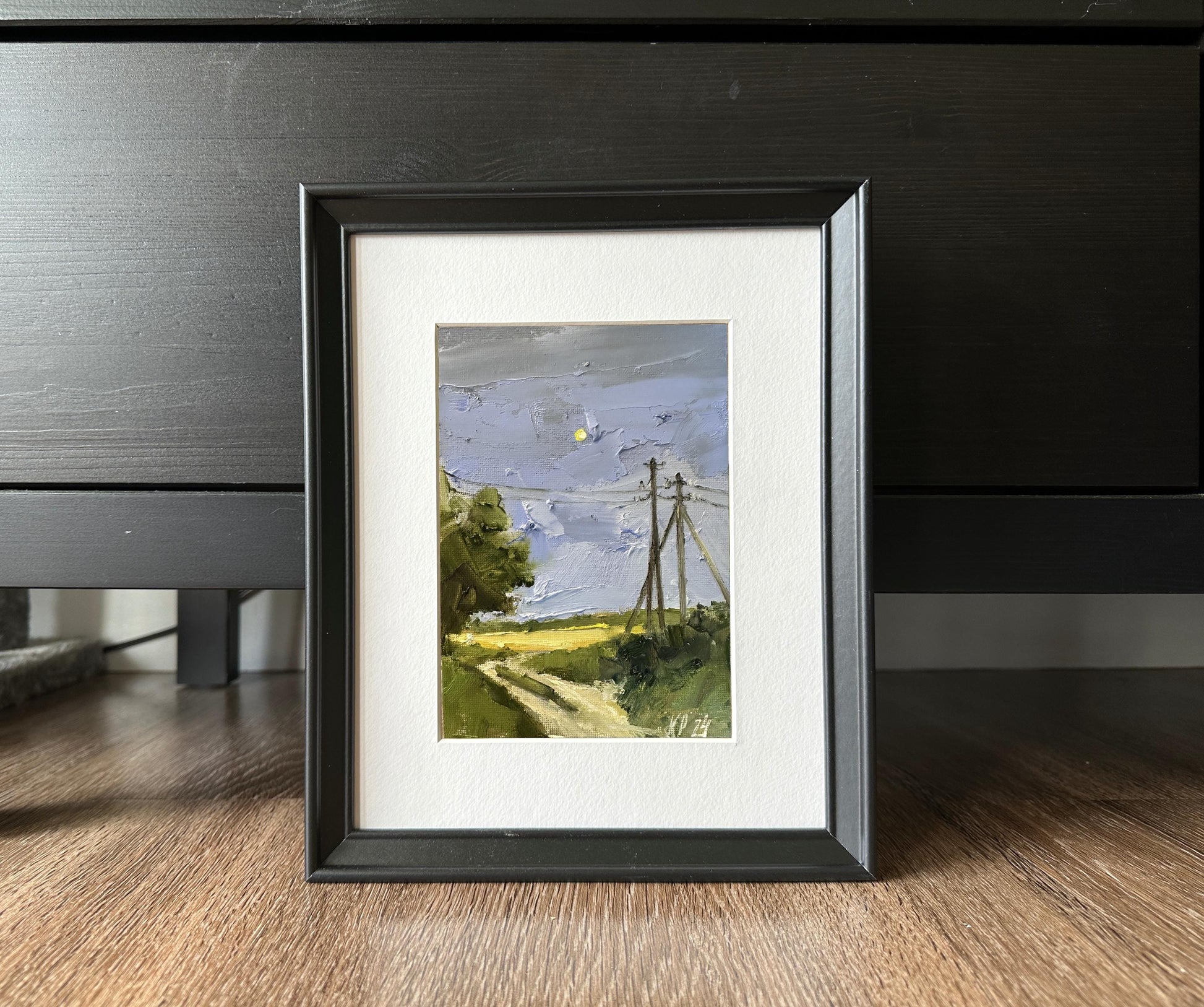 Moonlight oil painting on canvas. Minature landscape painting on canvas original signed art for new home gift. Nature small format art for farmhouse wall décor.