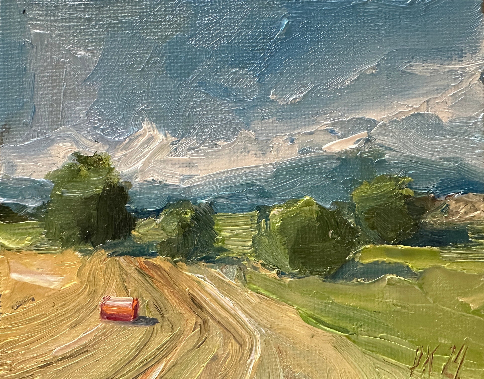 Rustic field small format miniature oil painting on canvas for home wall decor. Farmland abstract painting for gift. Wheat farm field wall art for house decor.