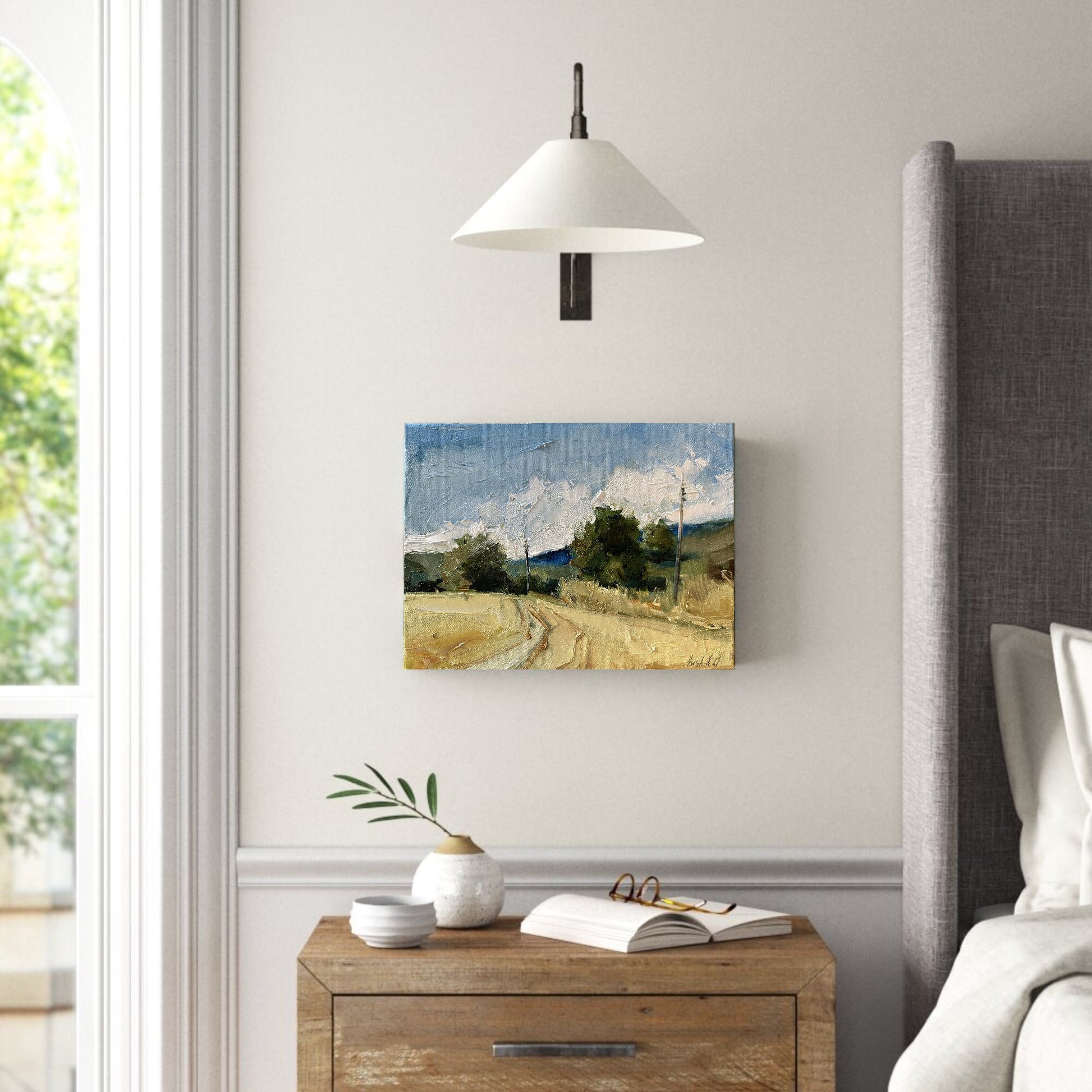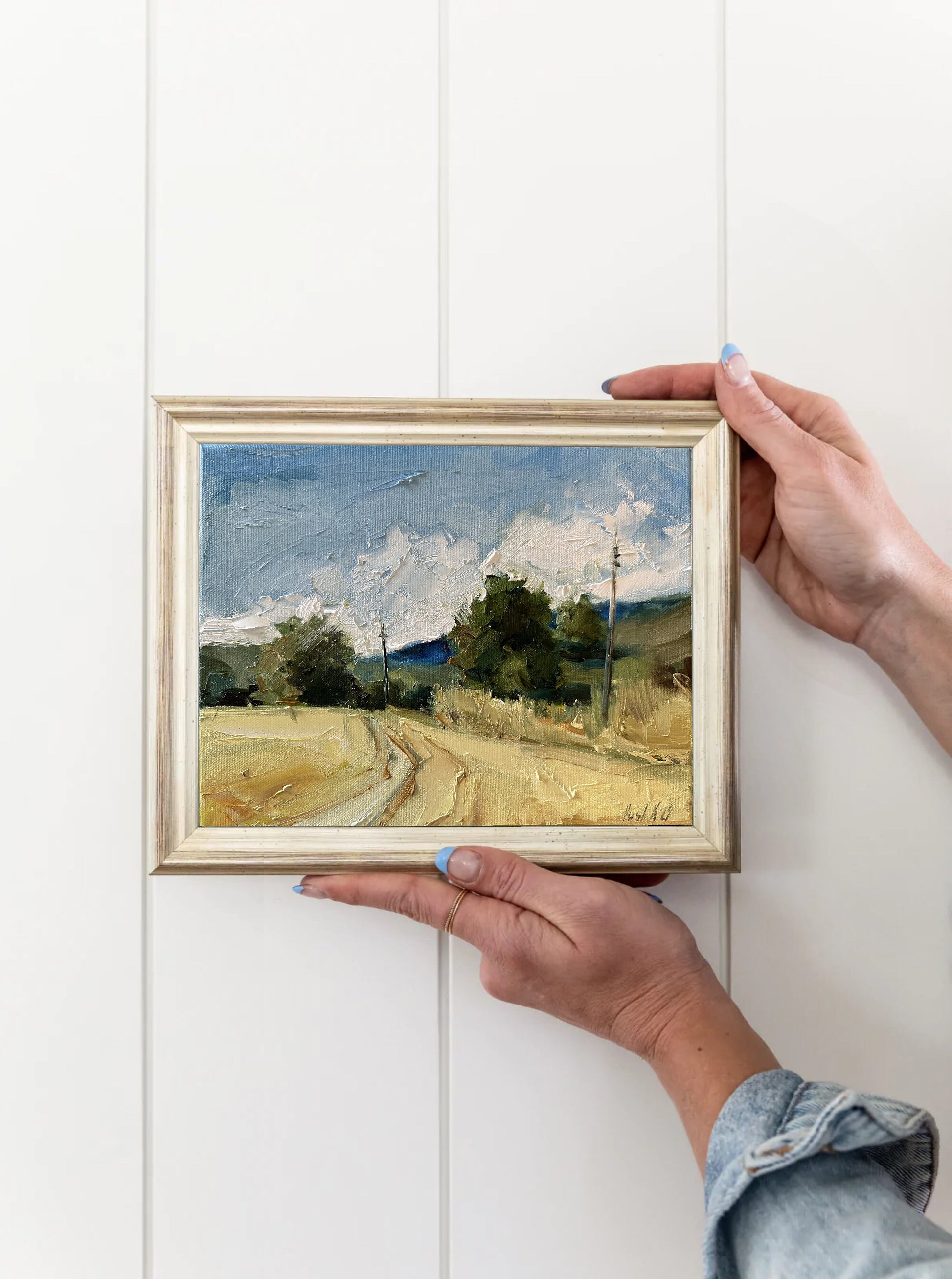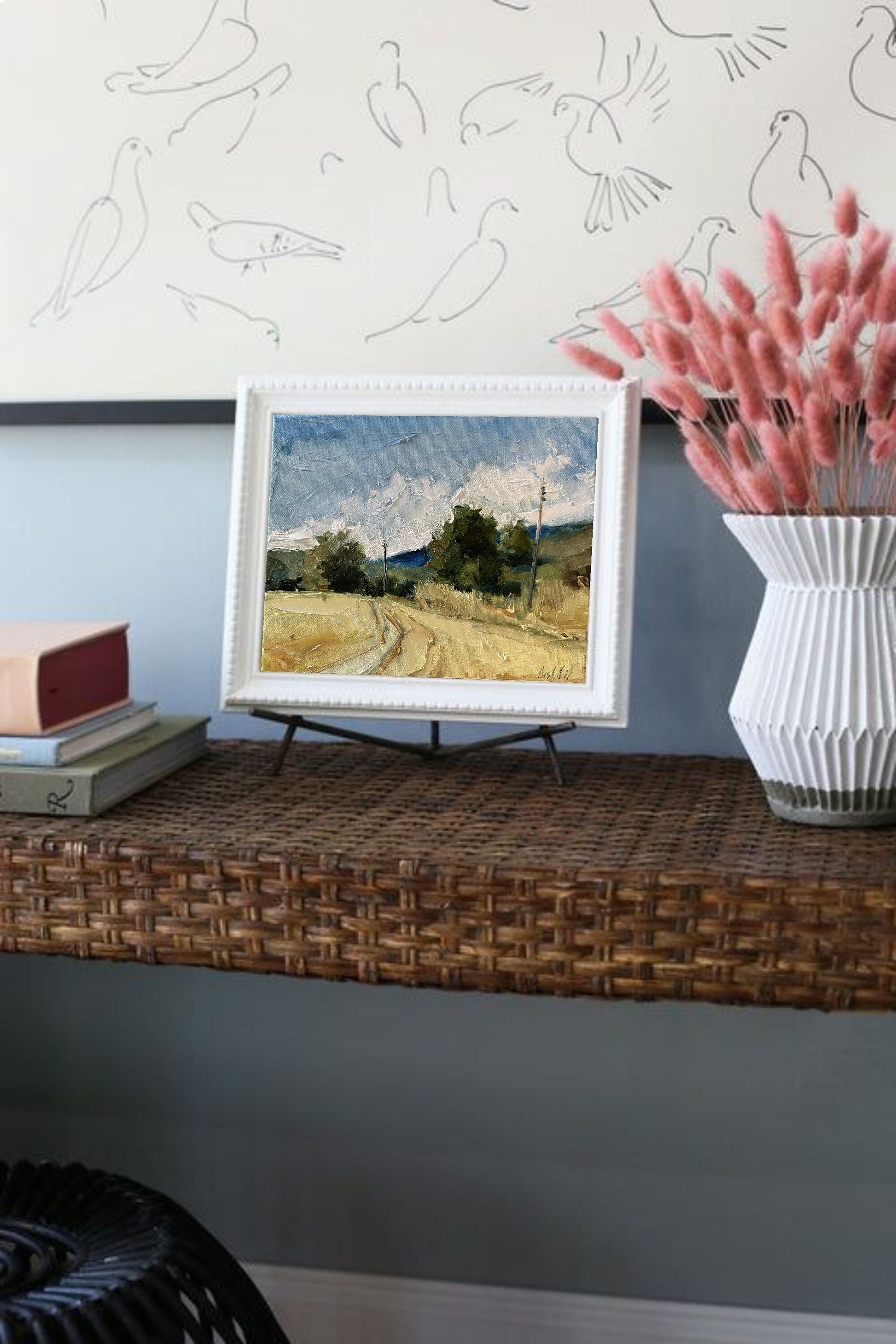 Scenic landscape canvas original oil painting for home wall decor.Autumn hillside art naiure oil painting for sale. Rainy palette knife painting for gift.