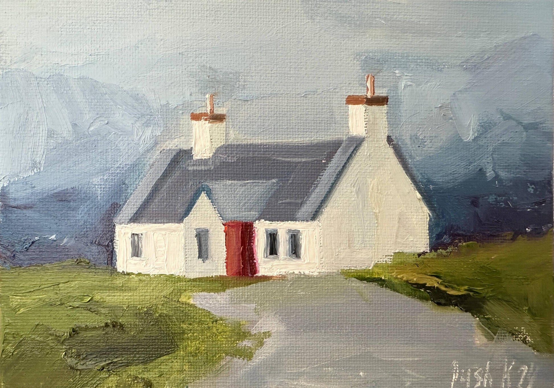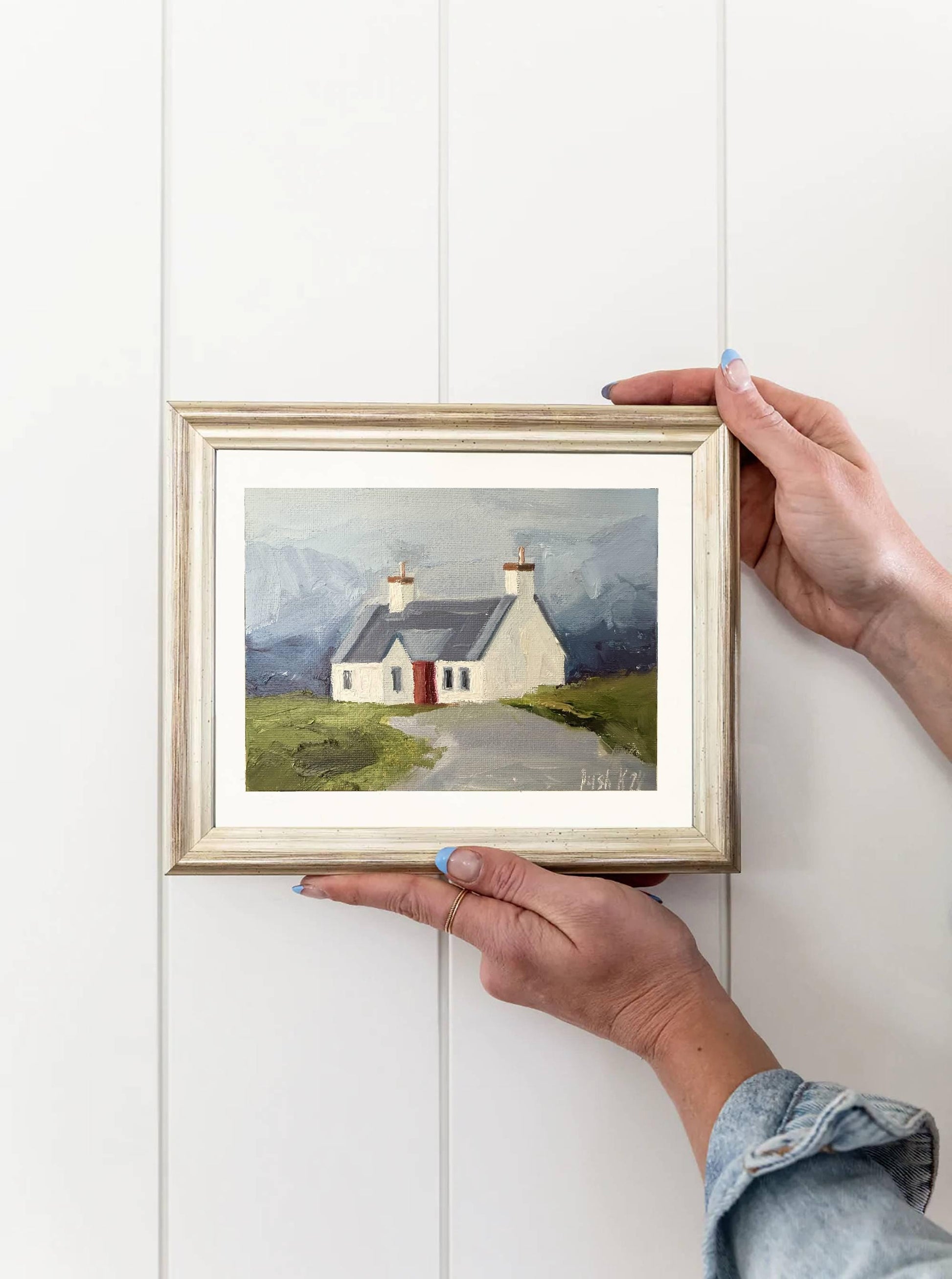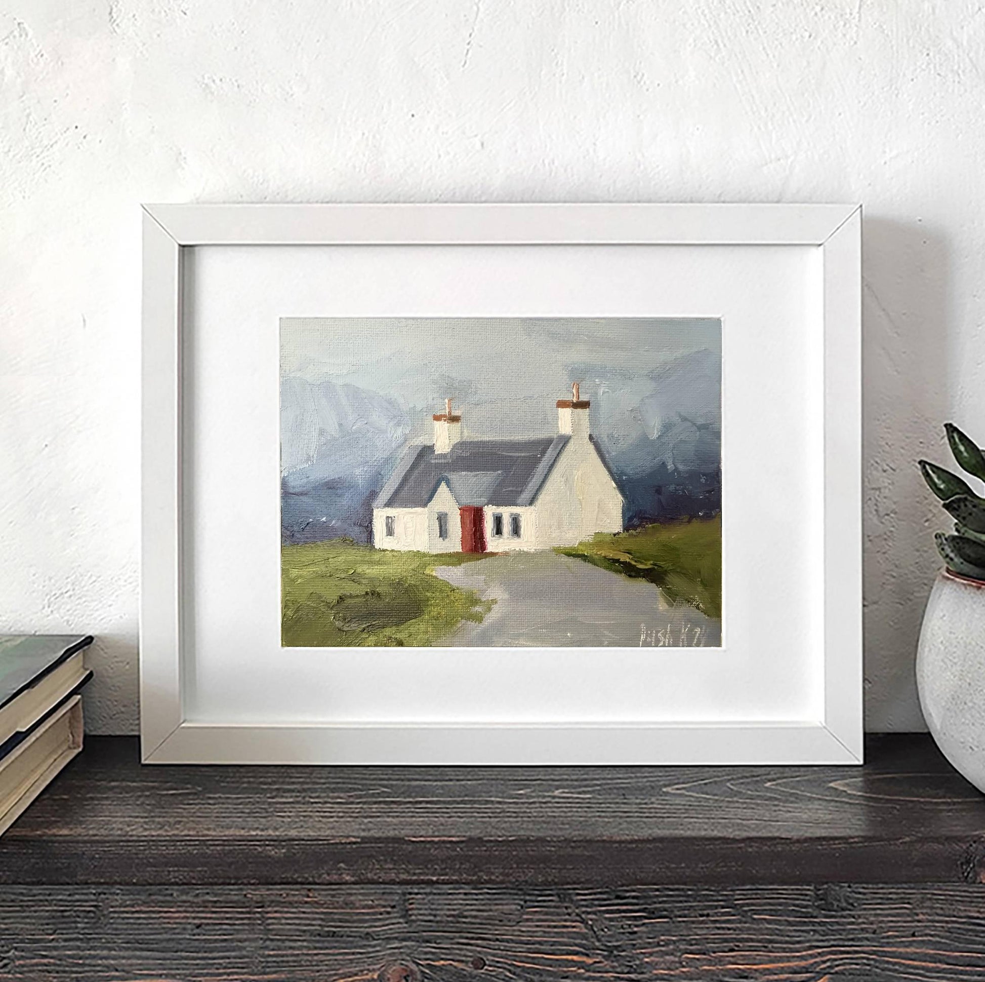 Scottish landscape original canvas oil painting for new home wall decor. House portrait painting for gift. Scotland small abstract art for home wall decoration.